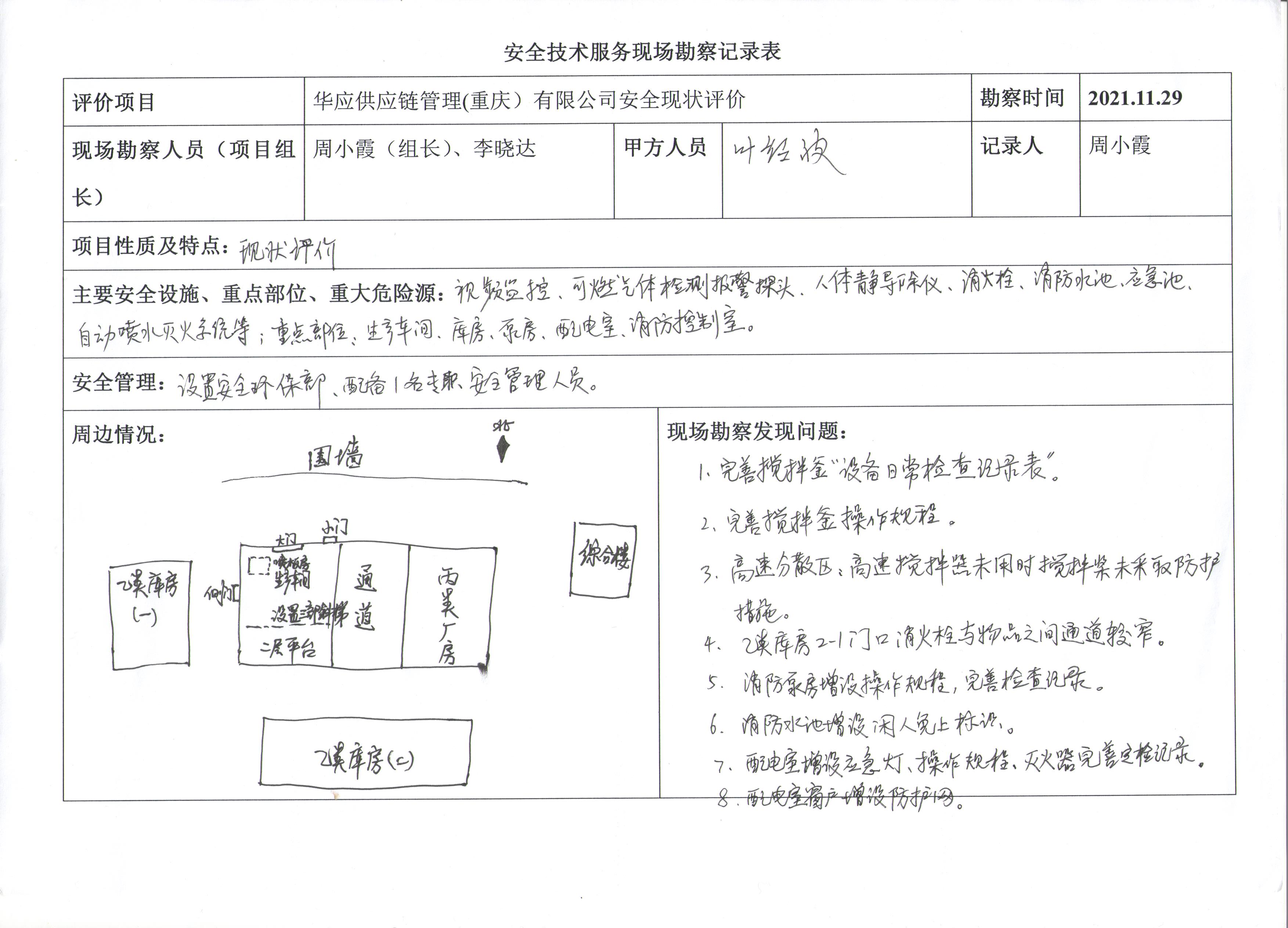 項(xiàng)目名稱 | 華應(yīng)供應(yīng)鏈管理(重慶)有限公司安全現(xiàn)狀評價 | 合同編號 | DA-(渝)-PJ-2021-005 | |||||